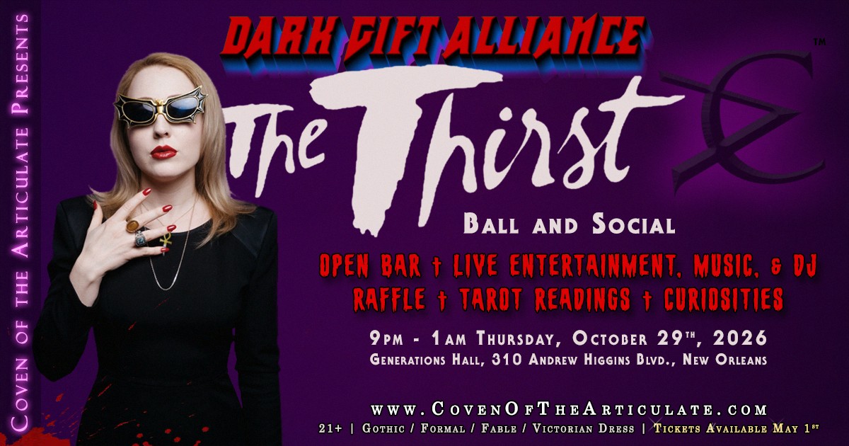 Dark Gift ALLIANCE and other CotA gatherings are just that-- gatherings. We strive to provide a blend of sophistication and energy to create the perfect atmosphere; one where you can have a good time while able to visit with others. We enjoy a slamming goth club night just as much as the next, but that’s simply not what our events are all about. Consider this more an annual preternatural meet and greet, where we can make and catch up with… old friends.